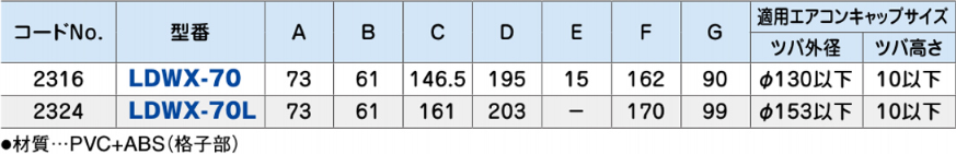 スリムダクトLDシリーズ LDWX ウォールコーナーエアコンキャップ/換気エアコン用 [LDWX-70]