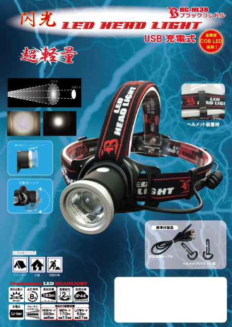 ブラックコンドル 充電式ヘッドライト [BC-HL38]