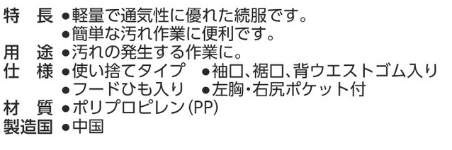 使い捨て作業続服