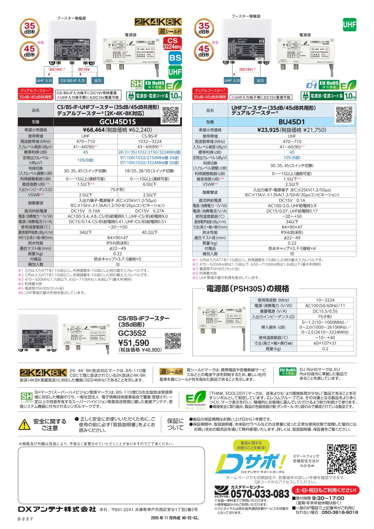 CS/BS-IF・UHFブースター [GCU45D1S]