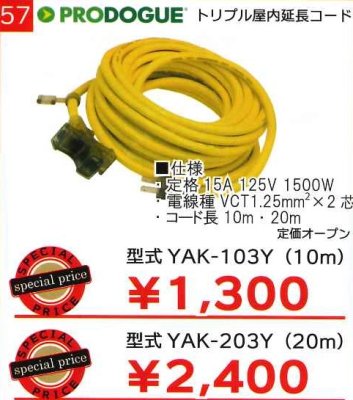 トリプル屋内延長コード [YAK-103Y]