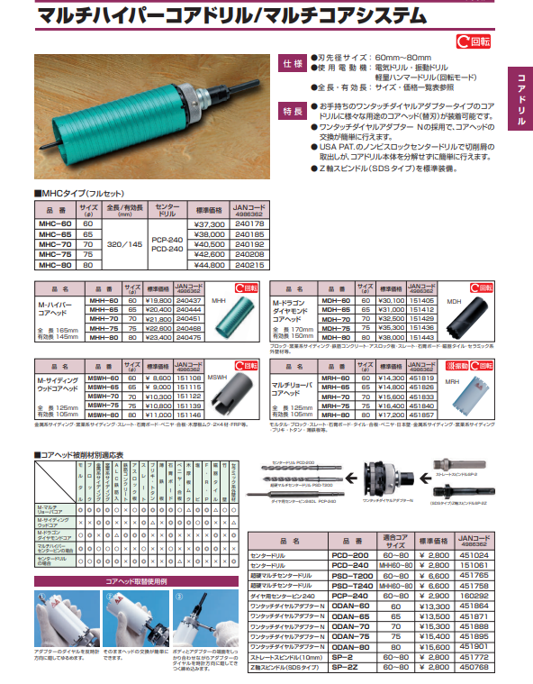 多機能コアドリル ALC用25φ〜170 P4-1404 P5-1404 P6-1404 P13-1404 P14-1405 P17-1404 [UR21-A]